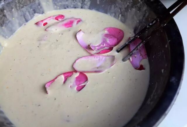 运气好的话还能碰上卖炸辛夷花馍馍的大婶,花瓣糊上一层面粉炸过。