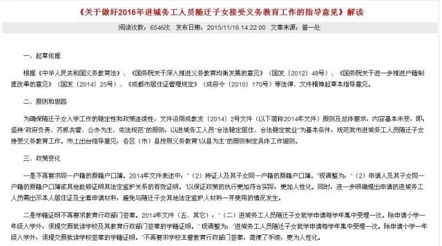 成都市教育局发布2016年小学毕业生初中入学(简称“小升初”)政策