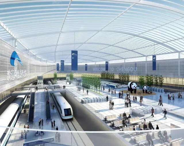 而位于博览城的综合交通枢纽是成都目前规划的最大轨道交通换乘枢纽,有4条轨道线在此交会,分别是地铁1号线三期、6号线、18号线和眉山线。