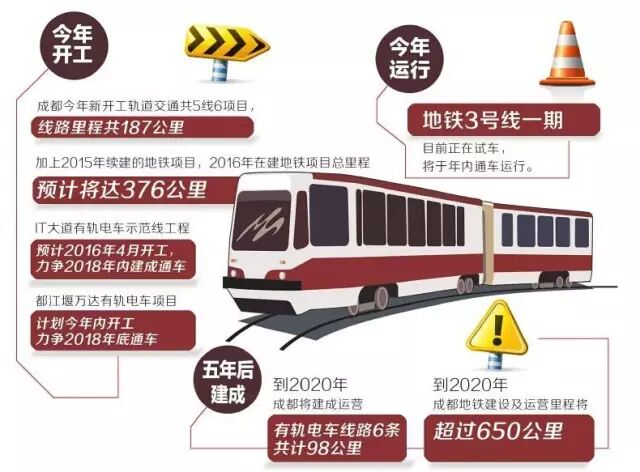 未来五年,成都地铁建设将面临的是史无前例的建设规模。五年后,以地铁为骨干,有轨电车等为辅助,成都地铁建设项目,含轻轨在内,实现成都市地铁建设运营线路15条,共计650公里,其中开通运营线路13条,在成都市中心城区,大多数市民步行15分钟以内就可到达地铁站。
