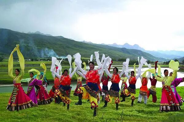 在拉萨更是少不了舞蹈,藏民们聚在一起时最爱跳的锅庄舞。跳舞的时候,男女各排半圆拉手成圈,有一人领头,分男女一问一答,反复对唱。