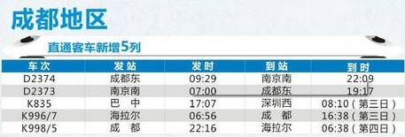 四川将开通成都至南京南、巴中至深圳等地14趟列车。