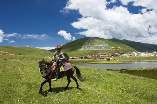 塔公草原是最有生活气息的草原,在晨曦初露的早晨,散落在草原上的牧民的黑帐篷里炊烟袅袅,时时飘来阵阵奶香、茶香。 早牧的牧民挤完牛奶后,赶着牛群走向草原的深处,时而传来阵阵吆喝声和悠扬婉转的牧歌,给大自然平添了无限生机。