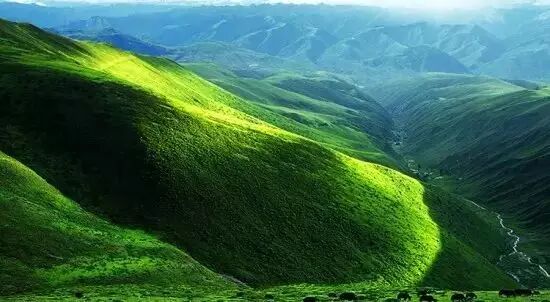 毛垭大草原在理塘县县城以西,群山的环抱之中,如海的草原郁郁葱葱,这就是毛垭大草原。它面积约5000平方公里,平均海拔4000米以上。被认为是中国最美的六大草原之一(排名第四)。