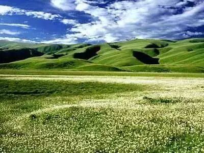 扎溪卡草原野花遍地,每年的6至9月,是草原最美的季节,草甸上星星点点搭起了许多蘑菇似的白帐篷,人们穿上鲜艳的民族服装,骑着高头大马,带着牦牛肉酥油糌粑青稞酒,来到草原上享受阳光享受生活。